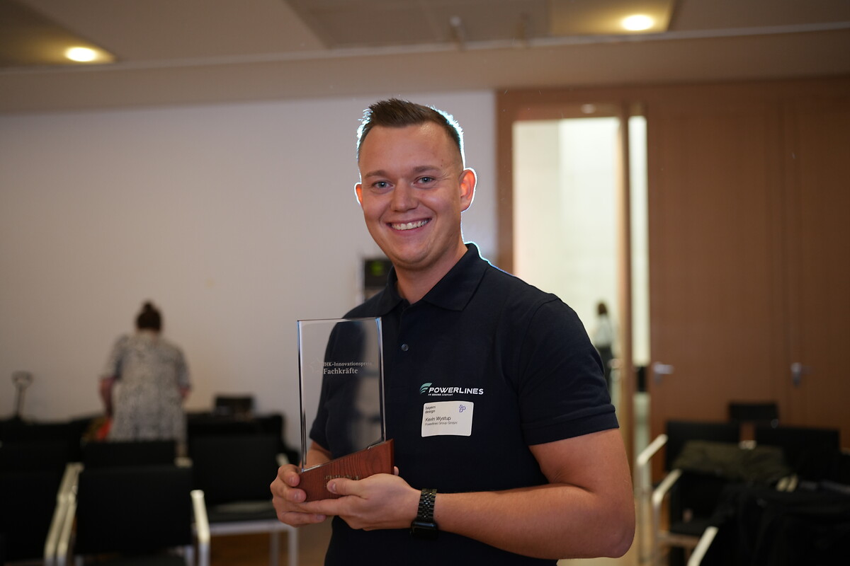 Kevin Wystup, Leiter Berufsausbildung und Teamleiter Recruiting bei der SPL Powerlines Germany GmbH, mit dem IHK-Innovationspreis Fachkräfte 2024.